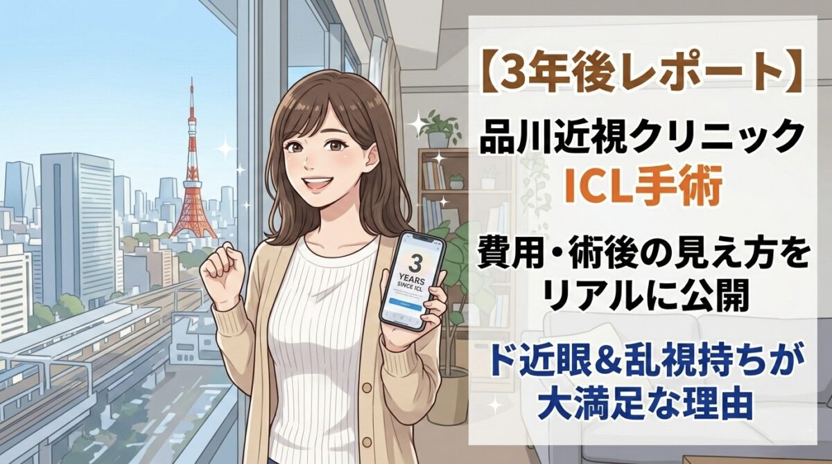 メガネがないと何も見えないド近眼&乱視持ちだった私が、2022年11月に品川近視クリニックでICL手術を受けてから3年以上が経ちました。